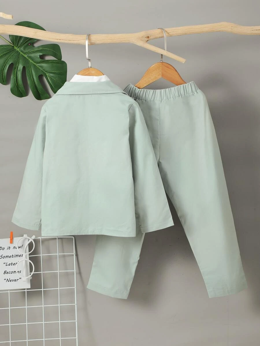 เด็กผู้ชาย สีพื้น กระดุมด้านหน้า เสื้อสูท & กระเป๋าแนวทแยง กางเกงขายาว & เสื้อเชิ้ต พร้อม ผูก b-6