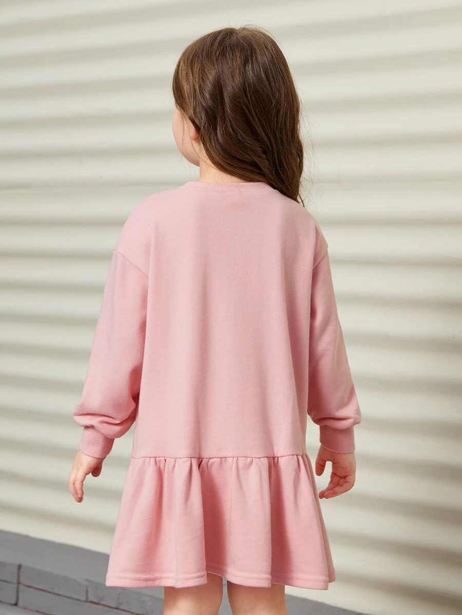 เด็กผู้หญิง เดรสสเวตเตอร์ ตัวอักษร & ลาย แมว ไหล่ตก นัวเนีย / ชายระบาย a-52