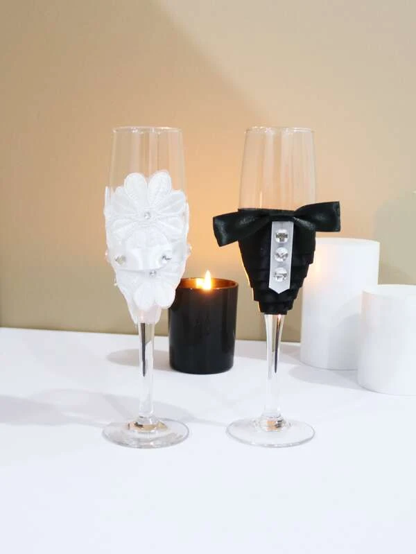 แก้วน้ำ กลิตเตอร์ พลอยเทียม & ตกแต่ง ดอกไม้ สำหรับ งานแต่งงาน ปาร์ตี้ 2 ชิ้น/เซ็ต oo-21