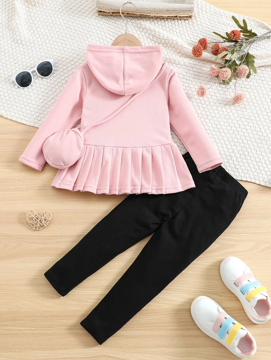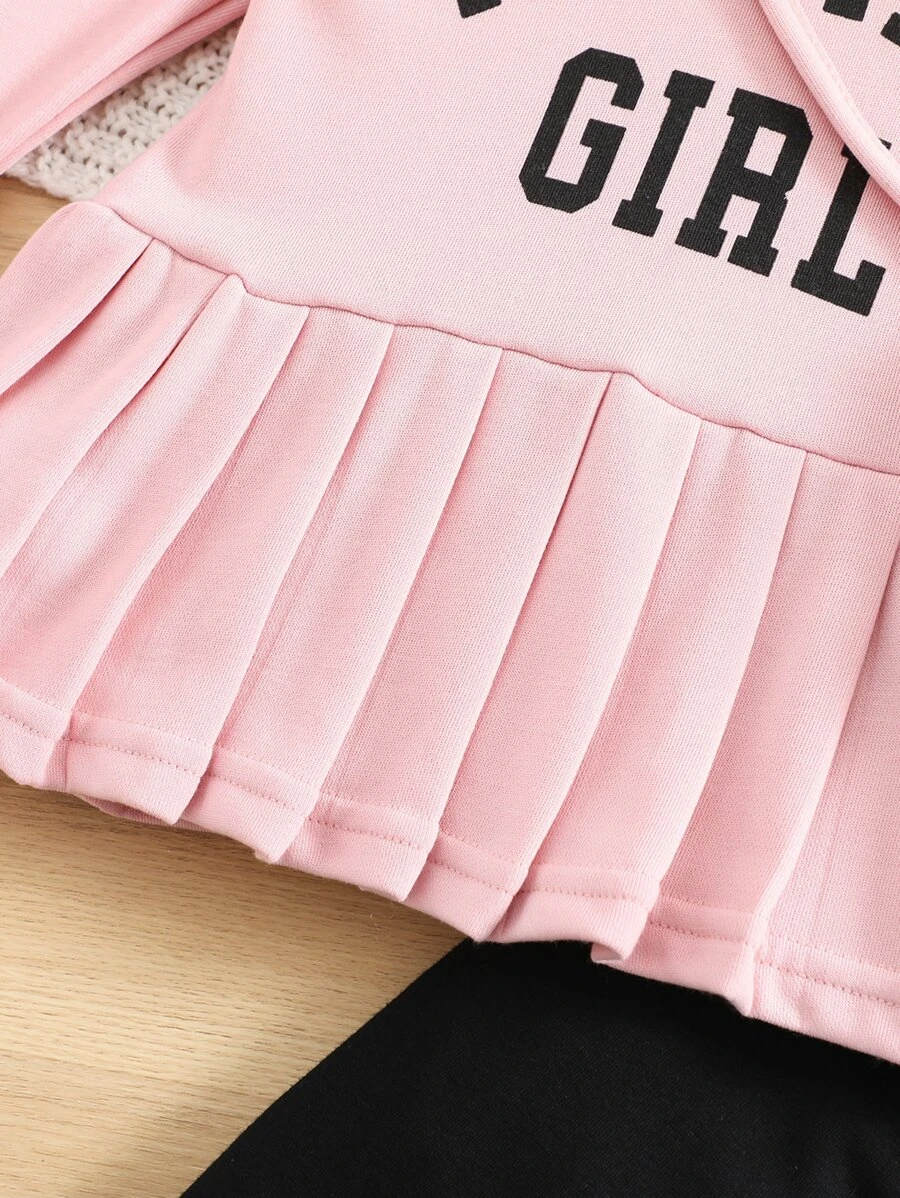 เด็กผู้หญิง ชุด เสื้อฮู้ด & เลคกิ้ง พิมพ์ ตัวอักษร ชายกระโปรงพลีท a-92