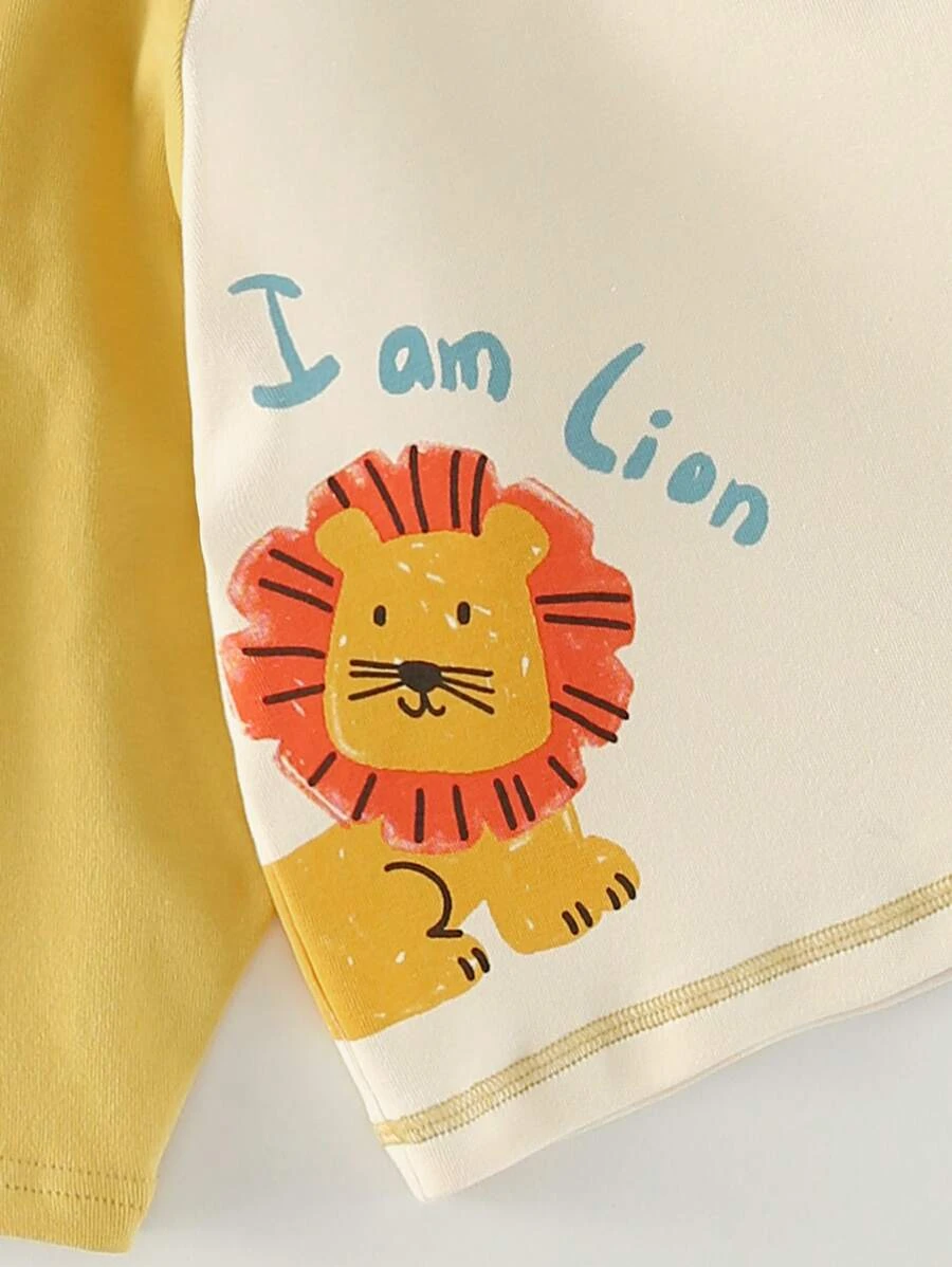 เด็กผู้ชาย เสื้อสวมหัว & กางเกงวอร์ม ลาย สิงโต & ตัวอักษร แขนเสื้อตะเข็บเย็บเฉียง b-29