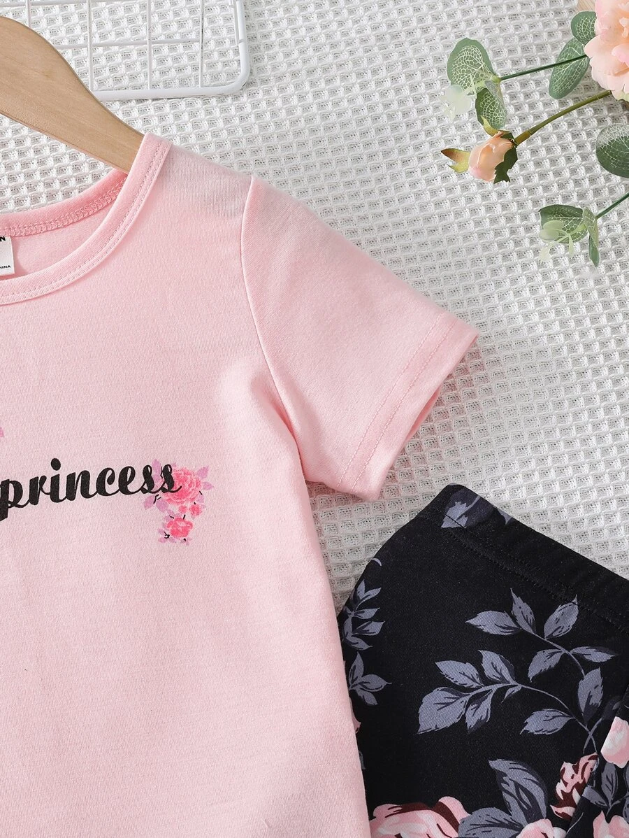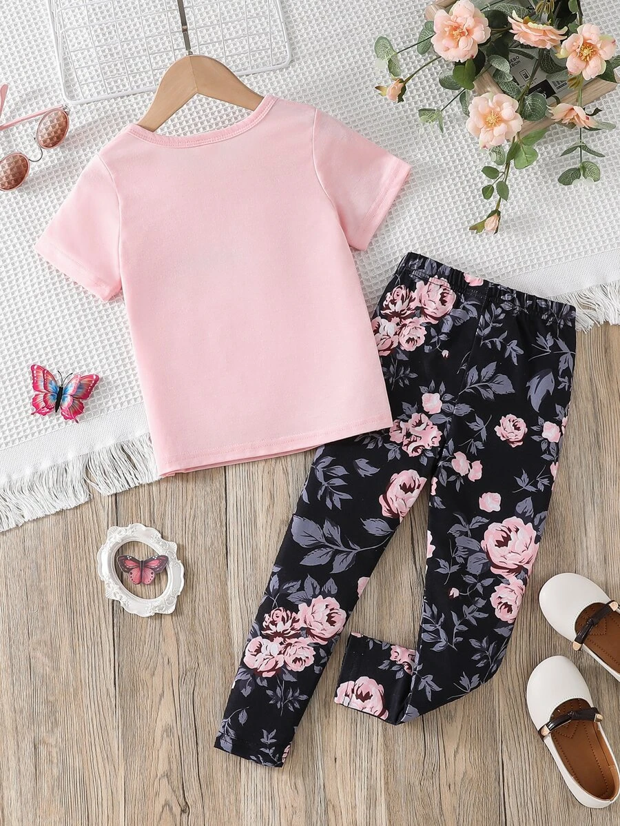 เด็กผู้หญิง เสื้อยืด & เลกกิ้ง พิมพ์ลาย ดอกไม้ & ตัวอักษร a-69