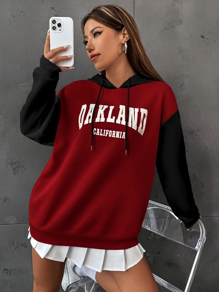 เสื้อฮู้ด ให้ความอบอุ่น กราฟฟิค ตัวอักษร บล็อคสี ไหล่ตก เชือกรูด cc-52