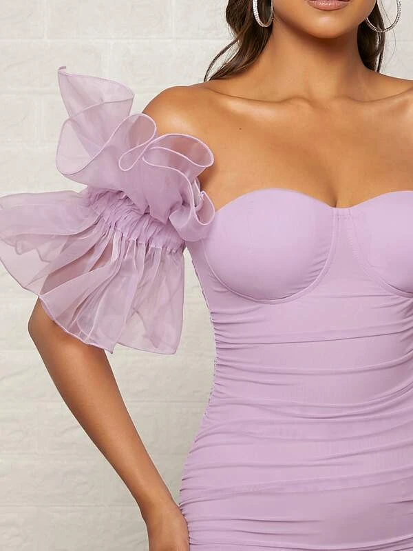 เดรส รัดรูป ผ้าออแกนซา แต่งระบาย เปลือยไหล่ บัสเทียร์ ผ้าโปร่ง ทรงทับ d-3