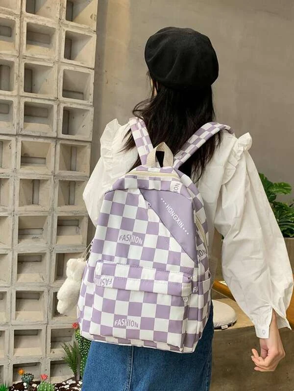 กระเป๋าเป้ คลาสสิค กระดานหมากรุก & กราฟฟิค ตัวอักษร พร้อม จี้กระเป๋า ll-116