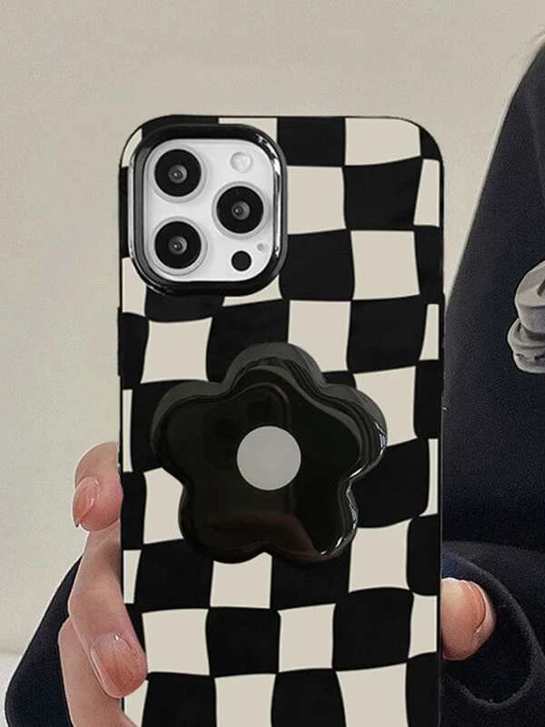 กระดานหมากรุก เคส โทรศัพท์ พร้อม ดอกไม้ ที่วางโทรศัพท์มือถือ ค-036