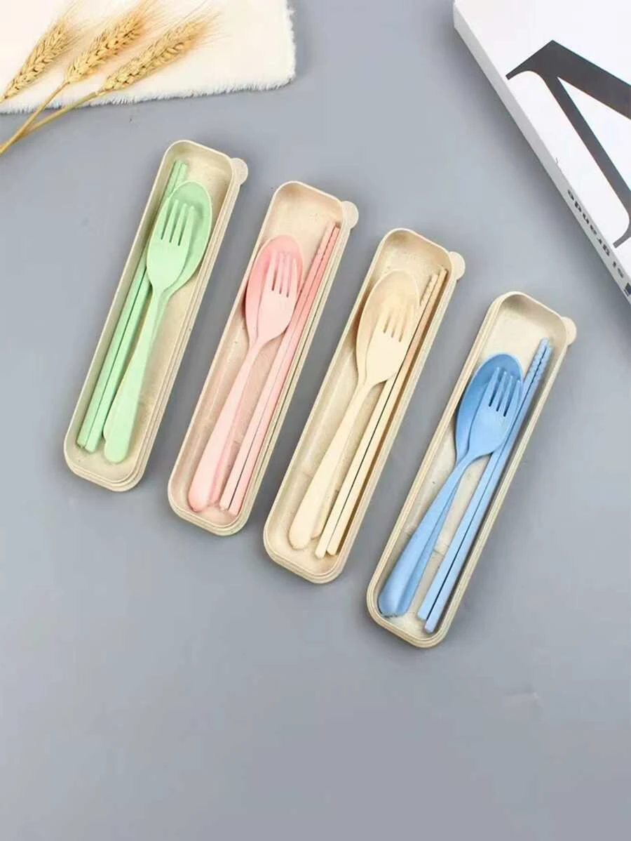ชุดช้อนส้อม แบบพกพา สุ่ม ชุดช้อนส้อมพกพา สีพื้น ชุดเครื่องใช้บนโต๊ะอาหาร สำหรับบ้าน 1 ชิ้น hh-13