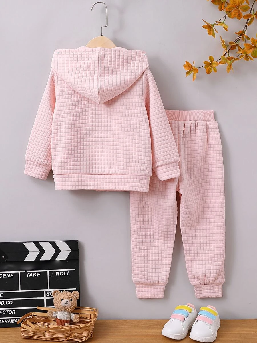เด็กผู้หญิง ฮู้ดดี้แบบมีซิป รายละเอียด ตุ๊กตาหมี & กางเกงวอร์ม ไม่มีเสื้อยืด a-75