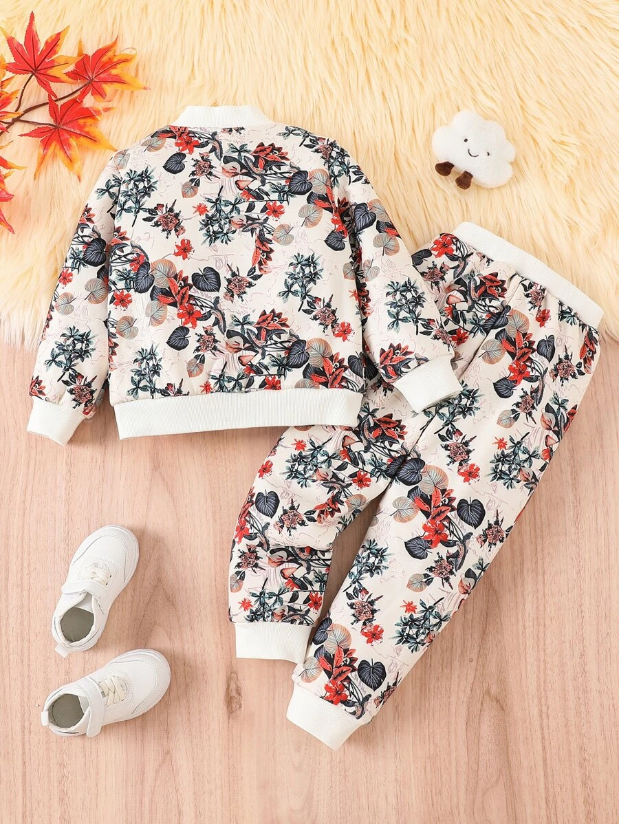 เด็กผู้หญิง แจ็คเก็ต บอมเบอร์ พิมพ์ลาย ดอกไม้ & กางเกงวอร์ม a-79