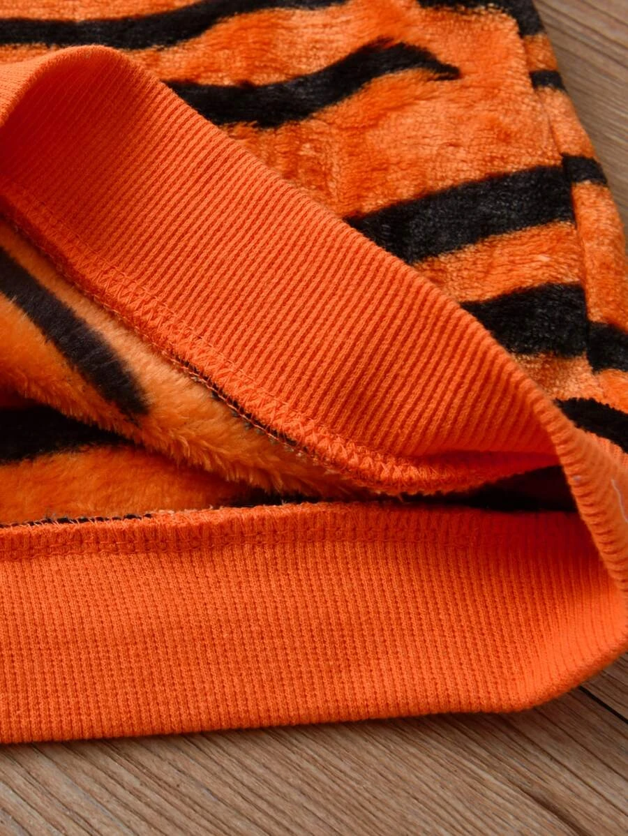 เด็กผู้ชายวัยหัดเดิน หนังเสือ ภาพพิมพ์ ผ้าสักหลาด เสื้อสวมหัว & กางเกงวอร์ม b-35