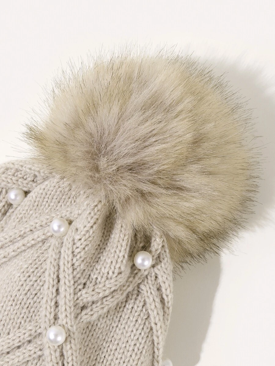 หมวกบีนนี่ ขอบพับ ไข่มุก & ปอมปอม ตกแต่ง i-83