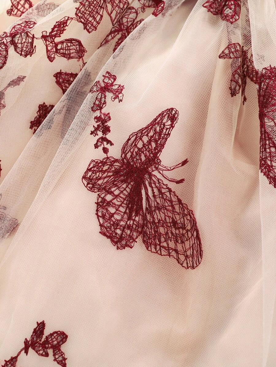 เด็กผู้หญิงวัยหัดเดิน เดรส ผีเสื้อ & ลายปักดอกไม้ ชายเสื้อมีดีเทลตาข่าย a-1