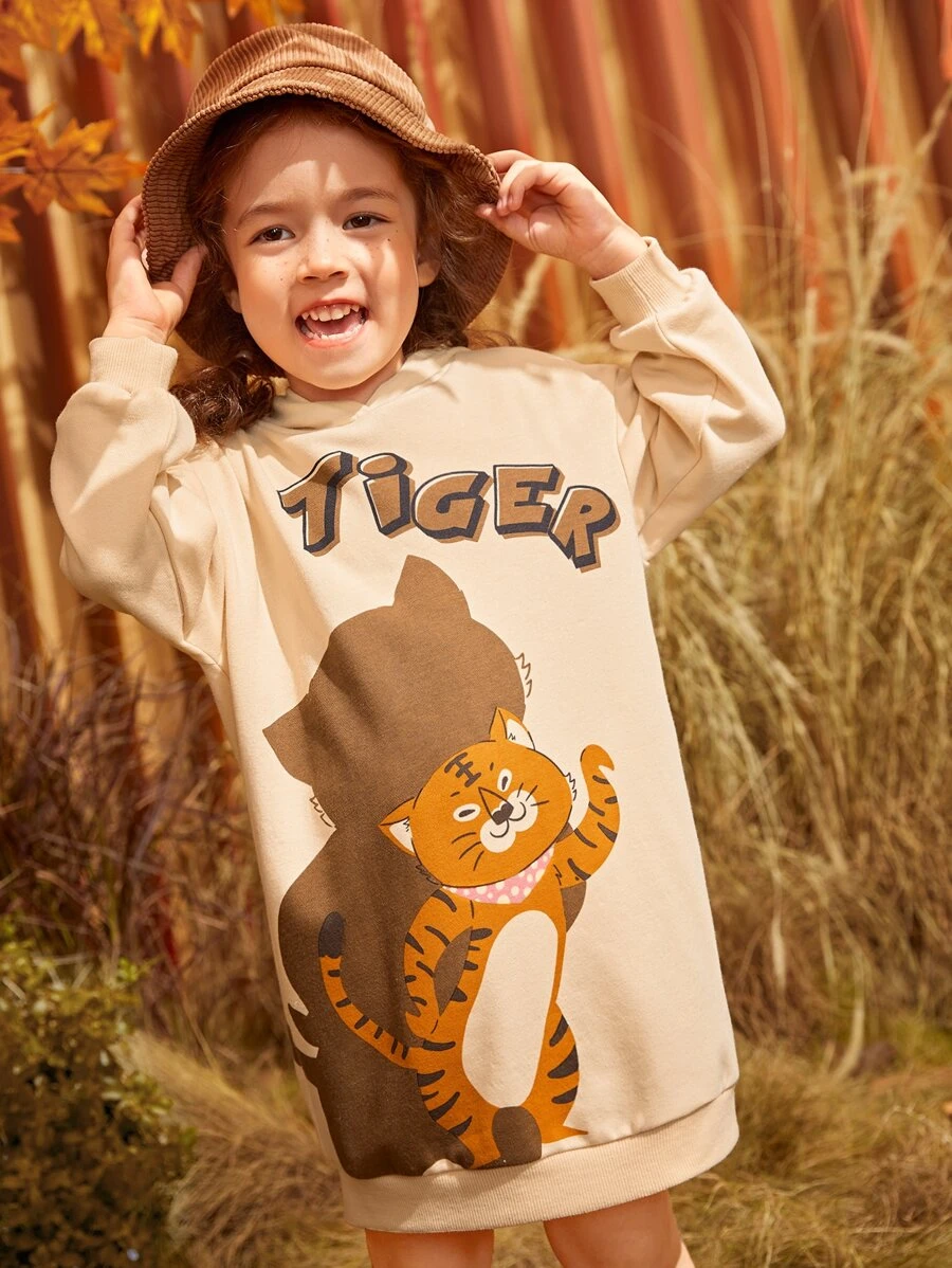 เด็กผู้หญิง เดรสฮู้ดดี้ ลาย ตัวอักษร & การ์ตูน a-47