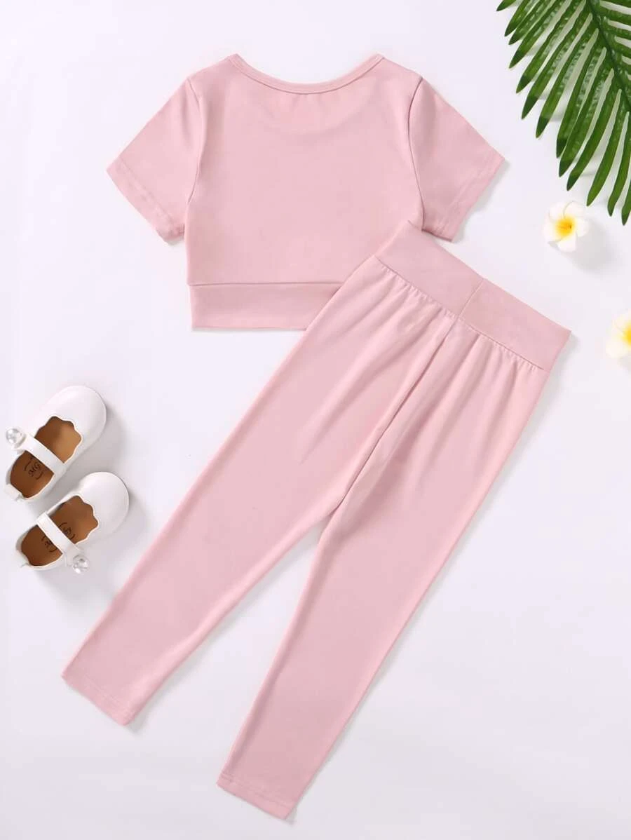 เด็กผู้หญิง เสื้อยืด พิมพ์ ตัวอักษร & เลกกิ้ง a-59