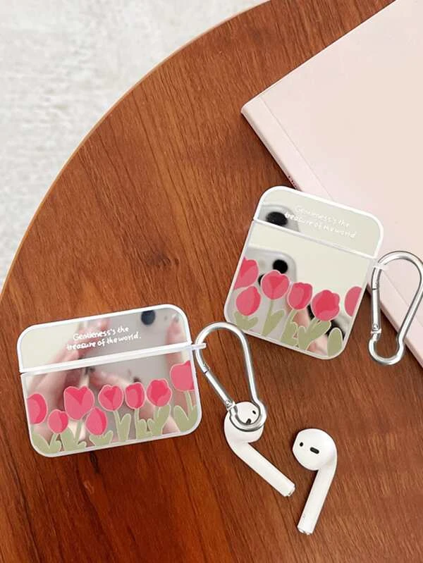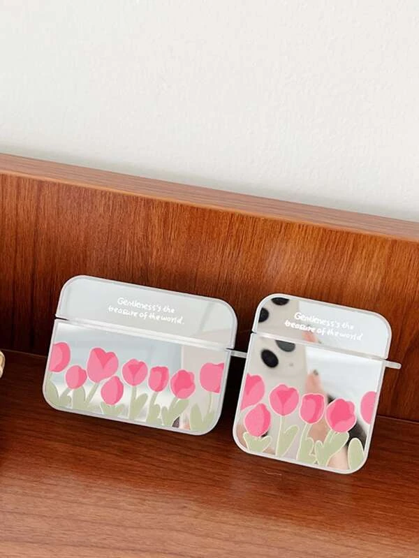 ดอกทิวลิป พิมพ์ กระจกเงา พวงกุญแจ เคส เหมาะกับ Airpods e-16