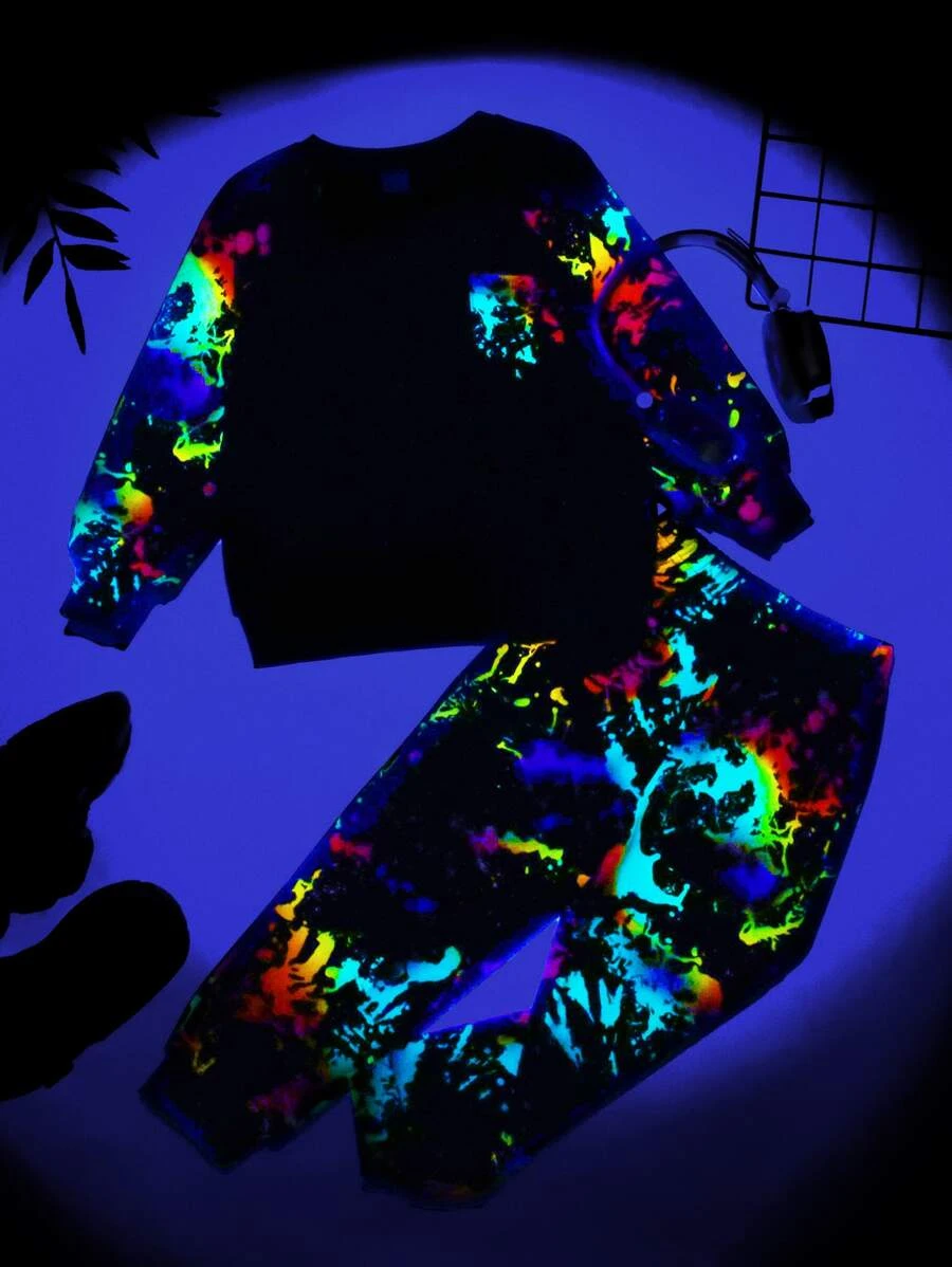 เสื้อสวมหัว เด็กเล็กผู้ชาย สะท้อนแสง ลายสาดสี และ กางเกงวอร์ม b-34