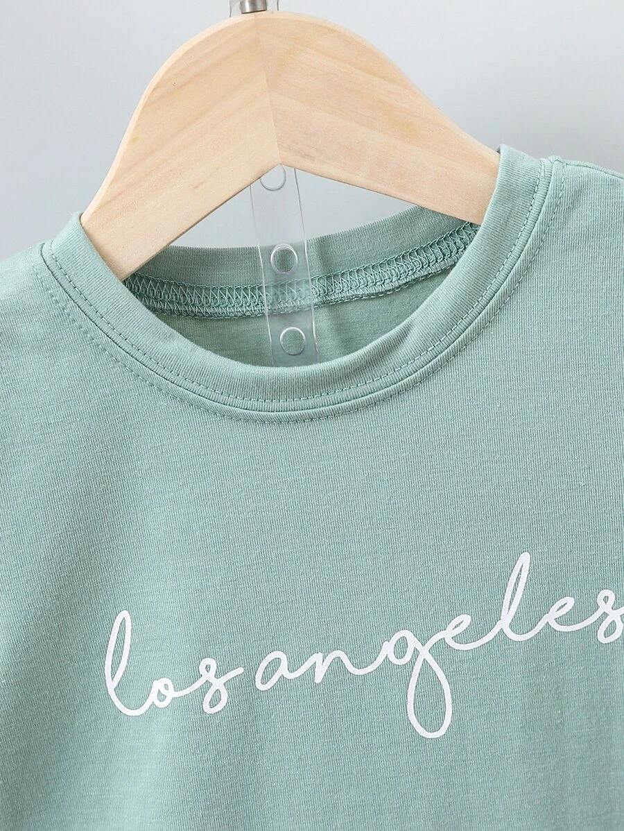 เด็กผู้ชาย เสื้อยืด พิมพ์ ตัวอักษร & กางเกงขาสั้น b-44