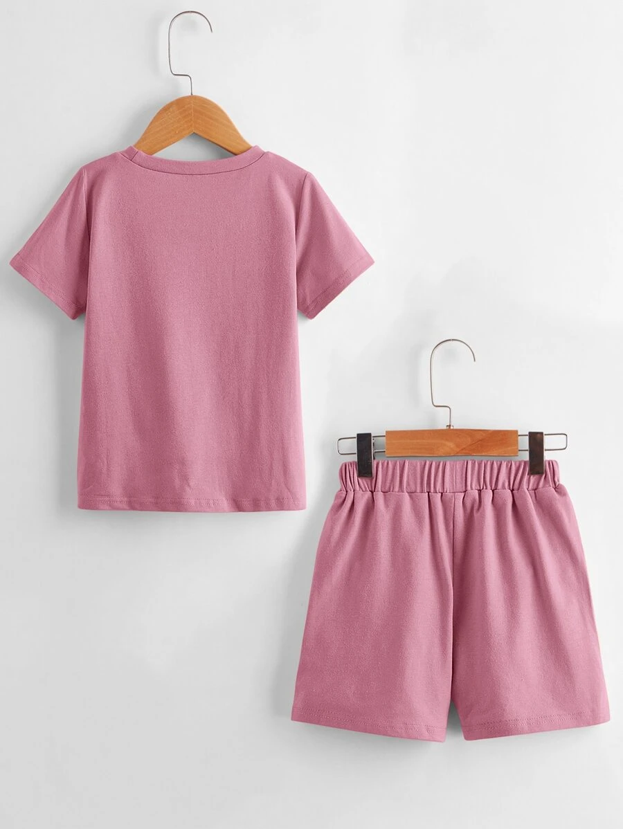 เด็กผู้ชาย เสื้อยืด แพทช์ ตัวอักษร พร้อม กางเกงขาสั้น b-49