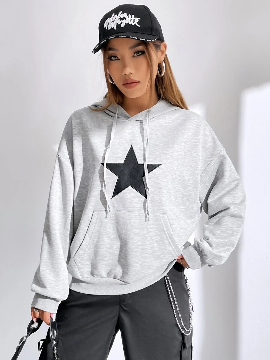 ฮู้ดดี้ ลายดวงดาว กระเป๋าหน้าท้อง ไหล่ตก เชือกผูก cc-59
