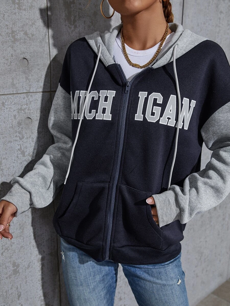 เสื้อกันหนาวมีฮู้ด แบบเก็บความอบอุ่นได้ ภาพกราฟิกตัวอักษร ไหล่ตก สายรัด cc-92