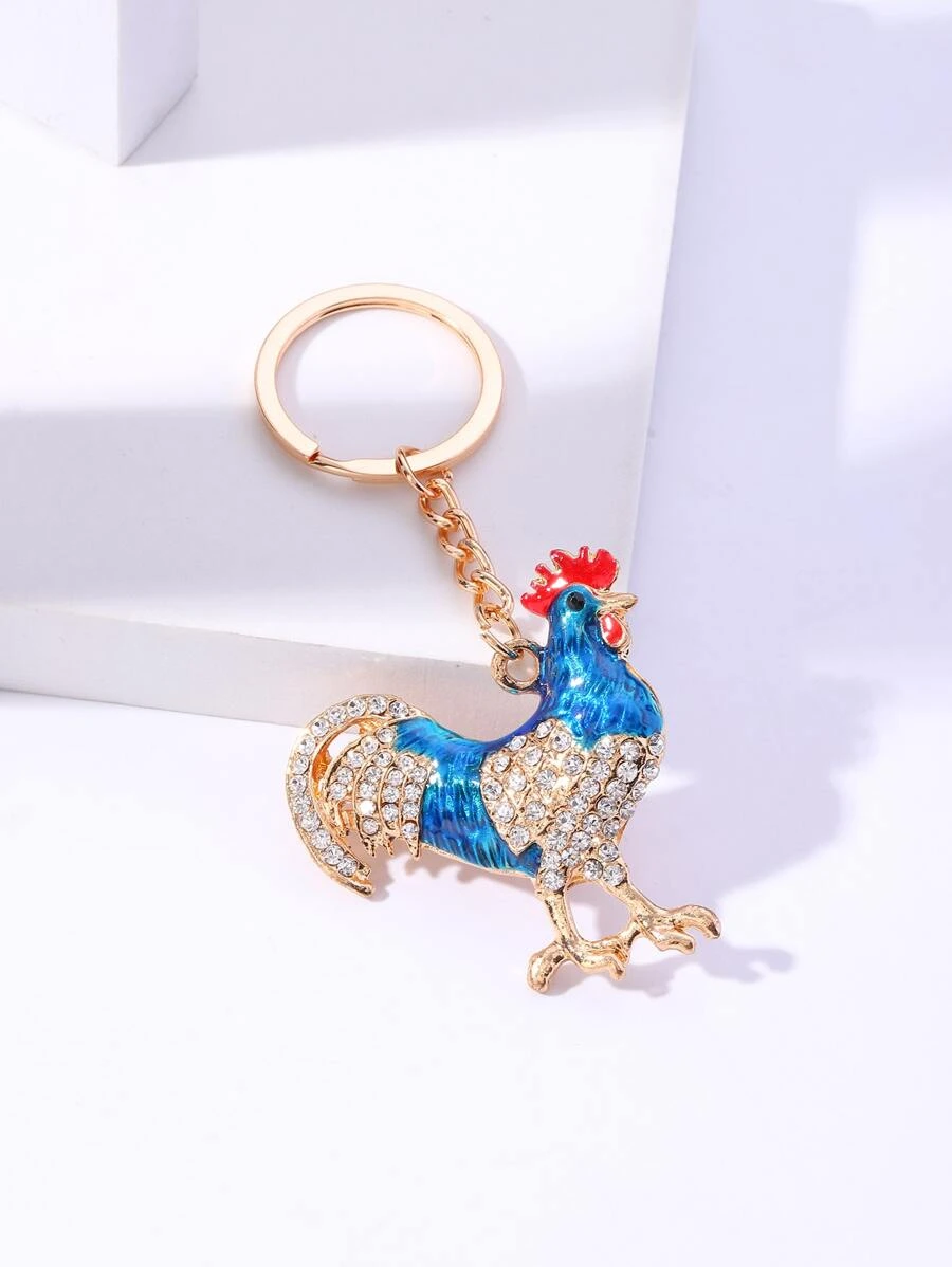 พวงกุญแจ ตกแต่ง พลอยเทียม ไก่ จี้ k-043