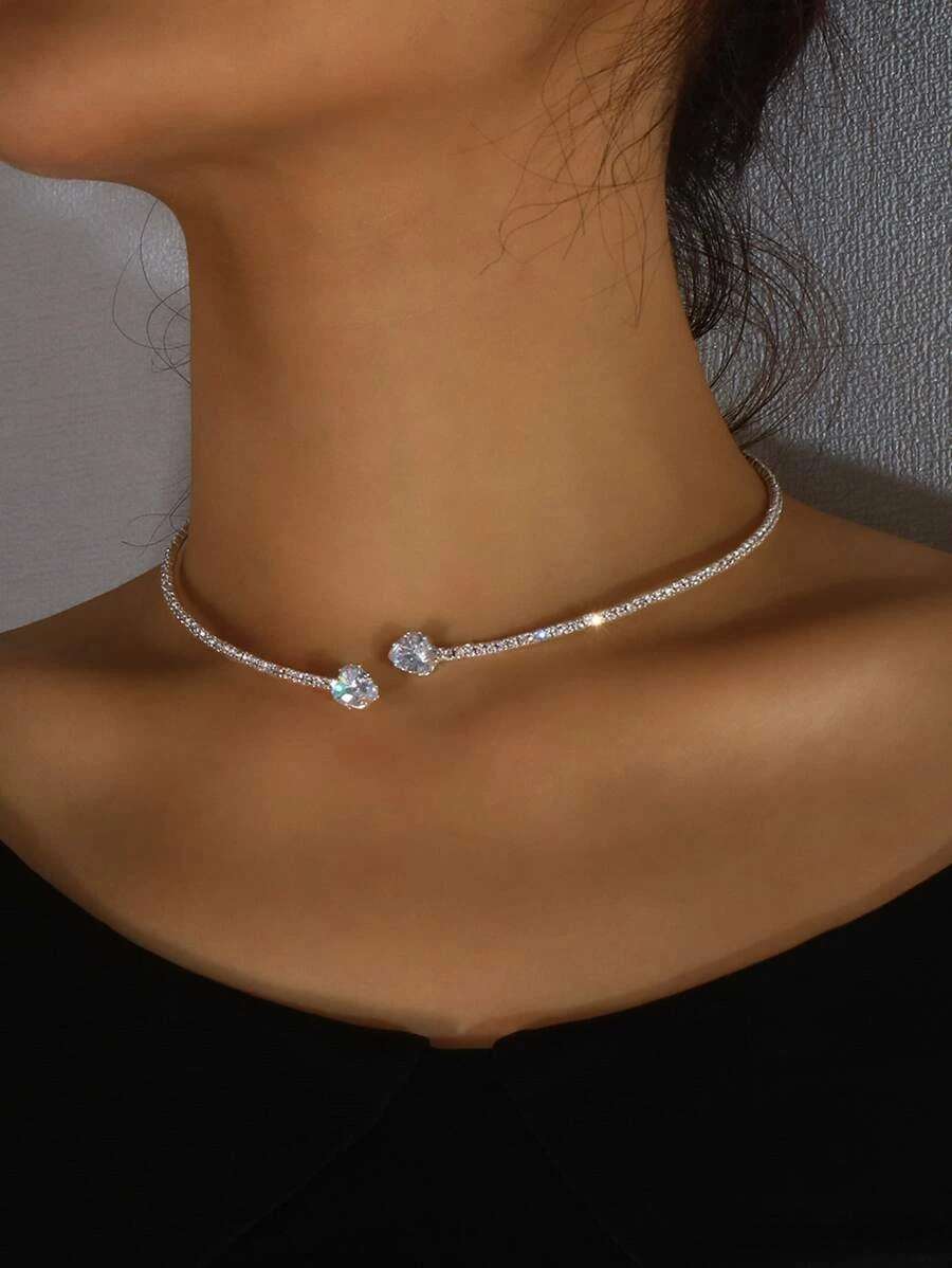 โชคเกอร์ ทรงเปิด พลอยเทียม ตกแต่ง หัวใจ kk-183