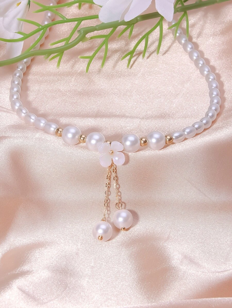 สร้อยคอ ดอกไม้ & จี้ ไข่มุกเทียม kk-49