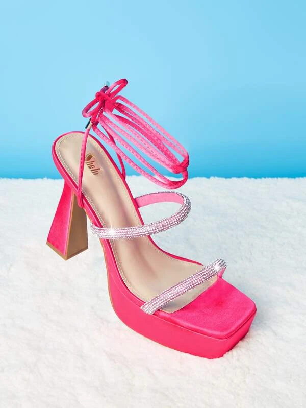 รองเท้าแตะรัดส้น ตกแต่ง พลอยเทียม แพลตฟอร์ม ส้นหนา l-26