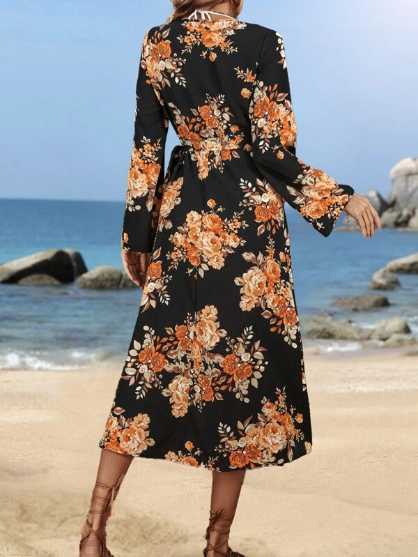 กิโมโน พิมพ์ลาย ดอกไม้ ผูกปมอยู่ข้างๆ ห่อ mm-118