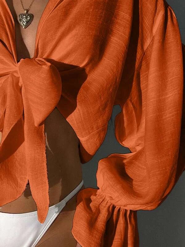 กิโมโน สีพื้น ผูกโบว์หน้า แขนเย็บรอยจีบ mm-234