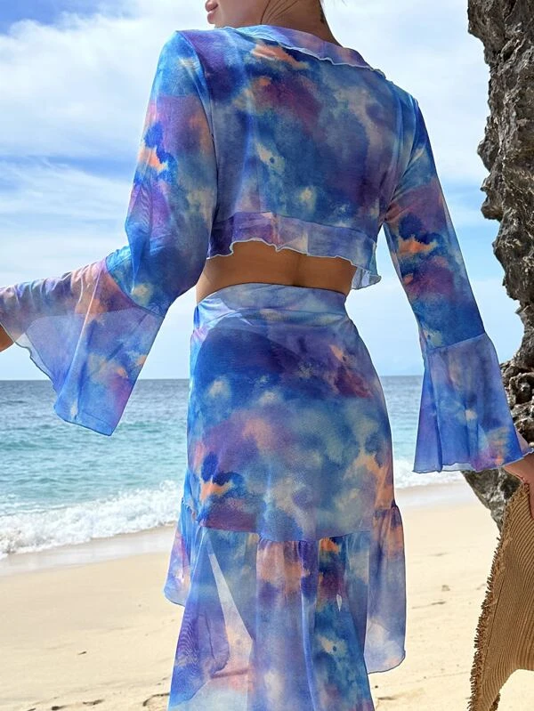 กิโมโน มัดย้อม ปมด้านหน้า แขนทรัมเป็ต ครอป mm-74