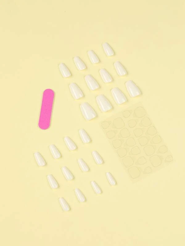 เล็บปลอม ทรงคอฟฟิน ยาว & เทปกาว 1 แผ่น & ตะไบเล็บ 1 ชิ้น 24 ชิ้น c-32