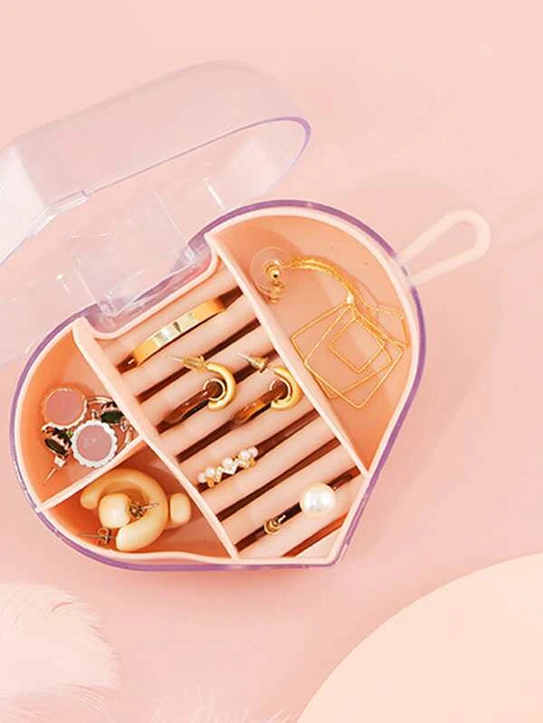 กล่องเก็บเครื่องประดับ โปร่งใส การออกแบบ หัวใจ พกพาได้ 1 ชิ้น i-91