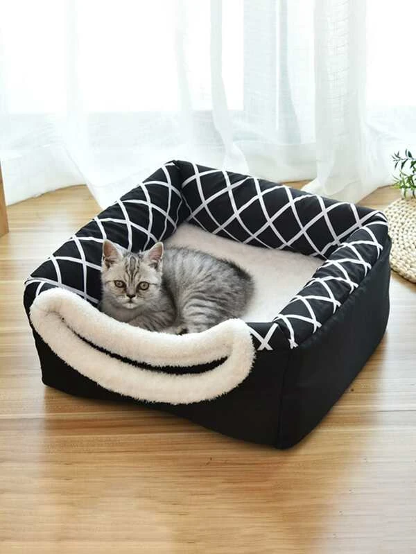 เตียง สัตว์เลี้ยง ลวดลาย เรขาคณิต ผ้าพลัช 1 ชิ้น j-7