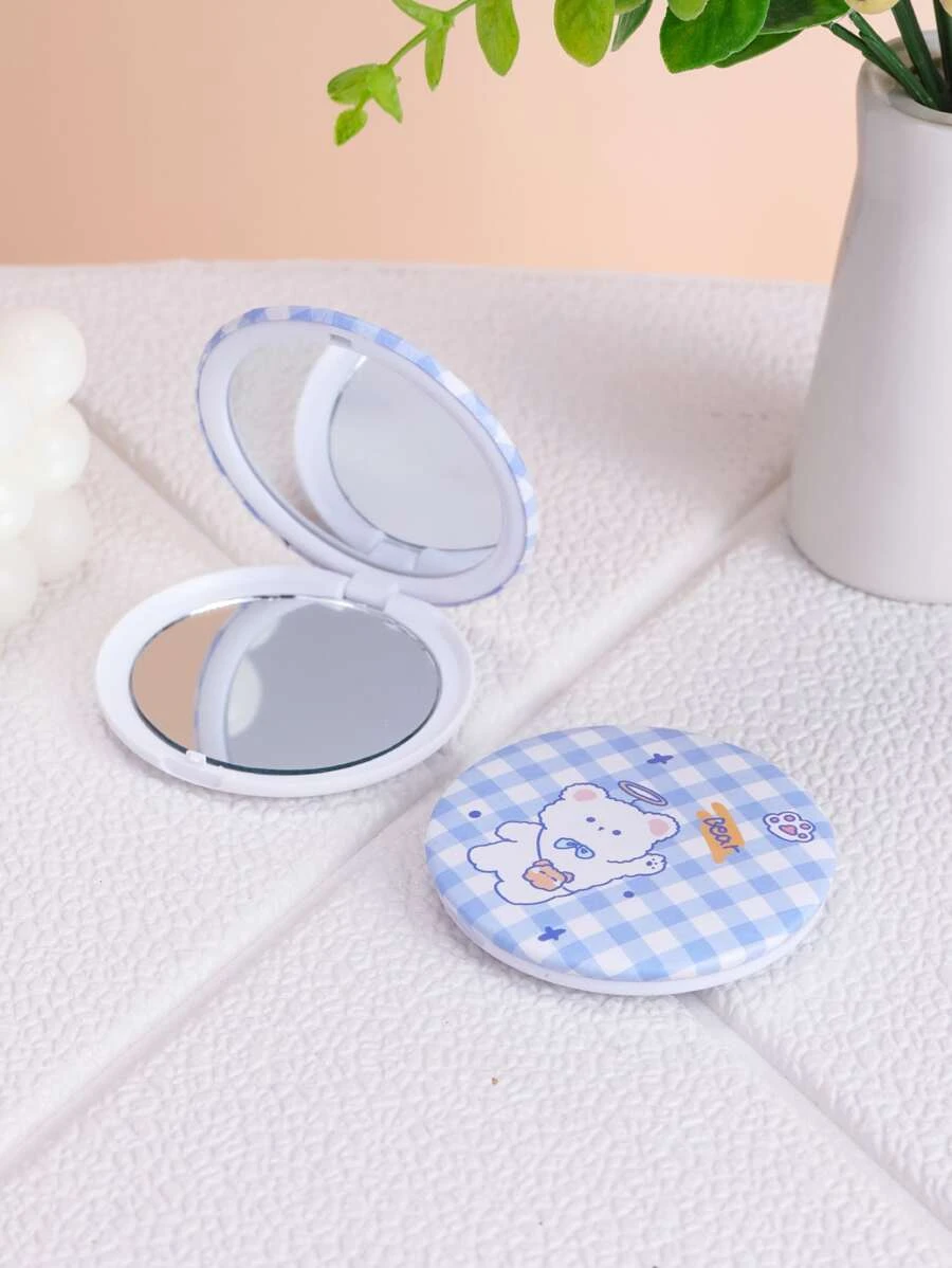 กระจกพับได้ การ์ตูน หมี & ลายกิงแฮม 1 ชิ้น k-37