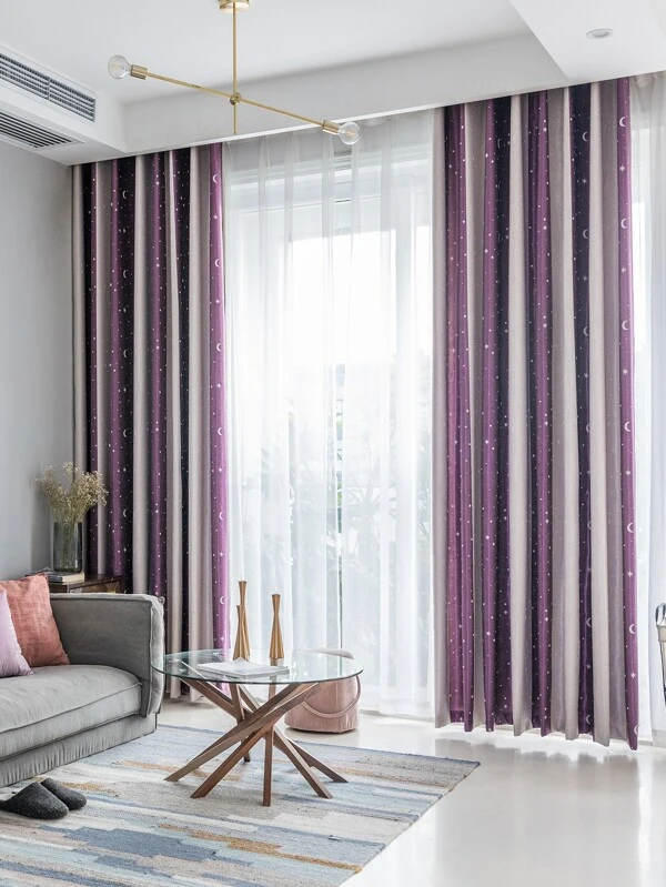 ผ้าม่านทึบแสง การออกแบบ ดวงจันทร์ & ดวงดาว 1แผ่น ผ184