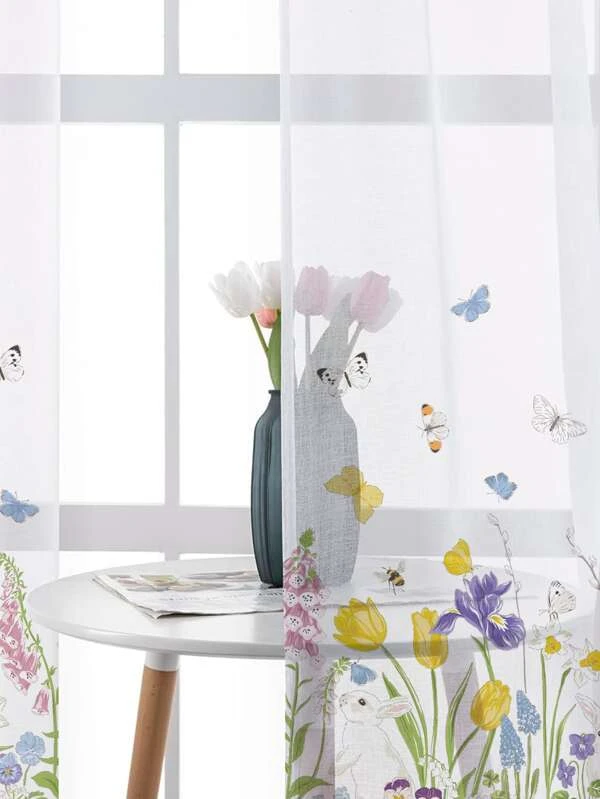 ผ้าม่าน ผ้าโปร่ง ลาย ดอกไม้ ผ188