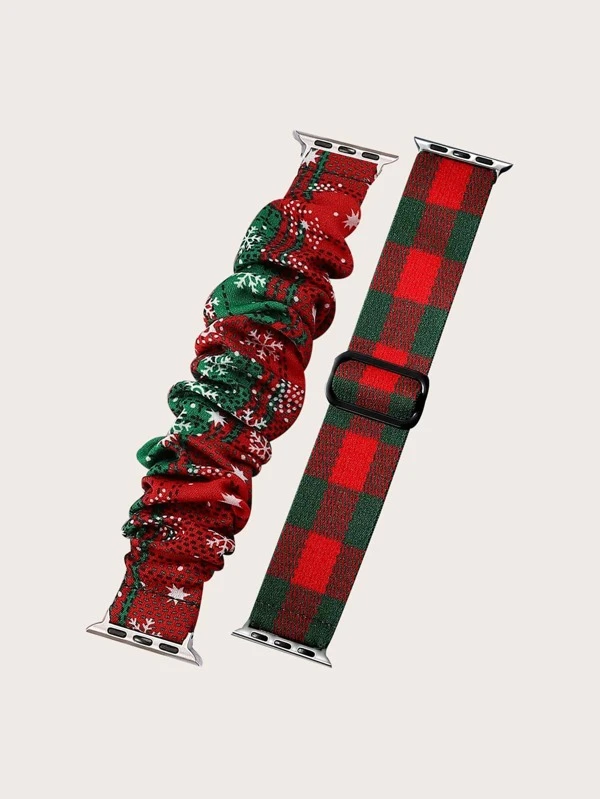 สายนาฬิกา แบบห่วงรัดผมลำไส้ใหญ่ คริสต์มาส ลายสก็อต เหมาะกับ A น-15pple Watch 2 ชิ้น น-