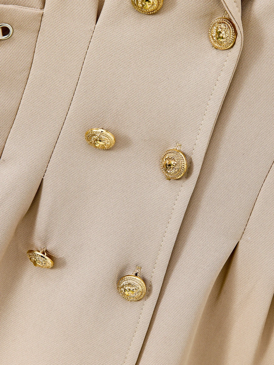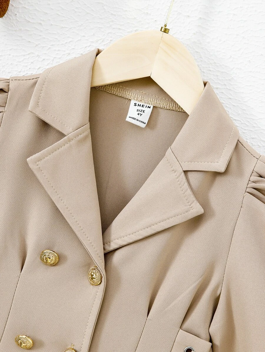 เด็กผู้หญิง เดรส กระดุมแถวคู่ แขนเย็บรอยจีบ ลูกไม้ด้านข้าง a-3