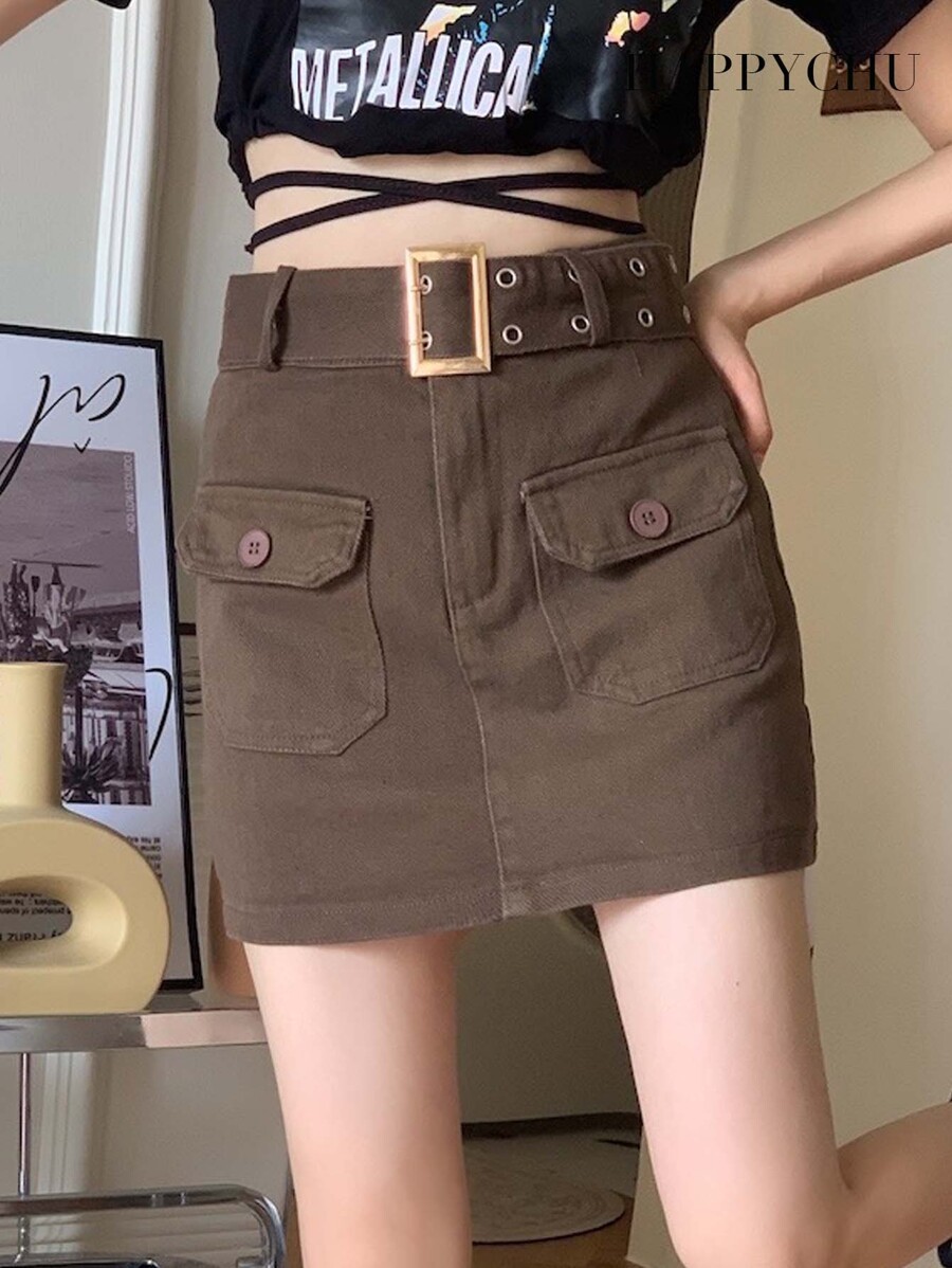 กระโปรงยีนส์ เนื้อผ้าหนา มีเข็มขัด พร้อมข้างในมีซับในเป็น กางเกง jj-22
