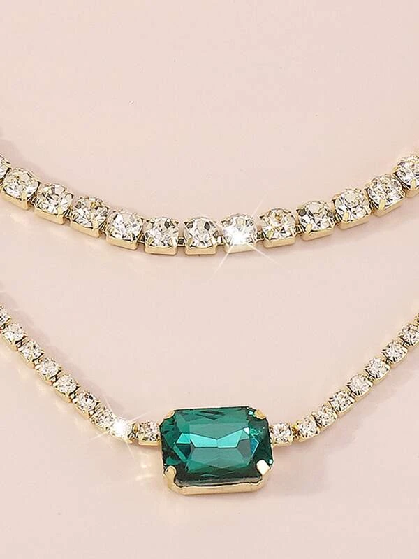 สร้อยคอ เลเยอร์ ตกแต่ง พลอยเทียม kk-250