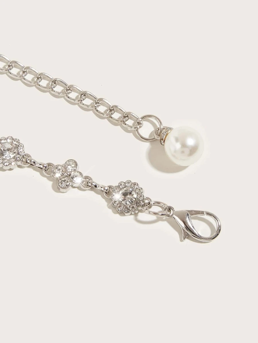 เข็มขัดโซ่ พลอยเทียม ตกแต่ง ดอกไม้ l-094