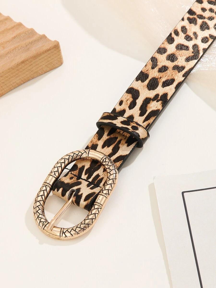 เข็มขัดบักเคิล ลายเสือดาว มีเท็กซ์เจอร์ ทรงวงรี l-12