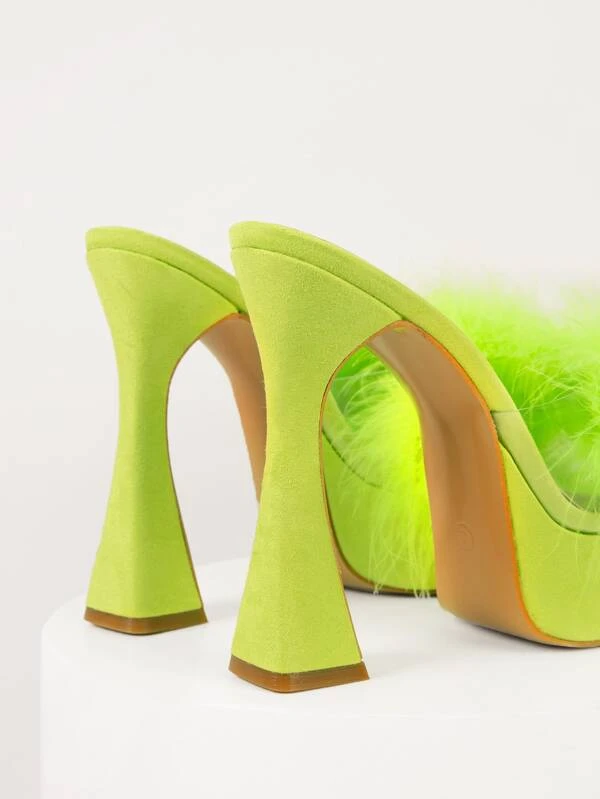 รองเท้าแตะ หนังเทียม เปิดนิ้วเท้า ปุย ส้นสูง l-30