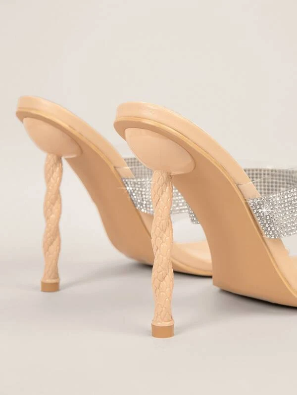 รองเท้าส้นสูง เปิดนิ้วเท้า พลอยเทียม สายหนัง บิดเกลียว l-78
