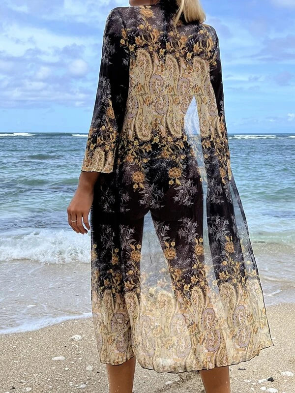 กิโมโน พิมพ์ลาย ดอกไม้ เปิดหน้า mm-184