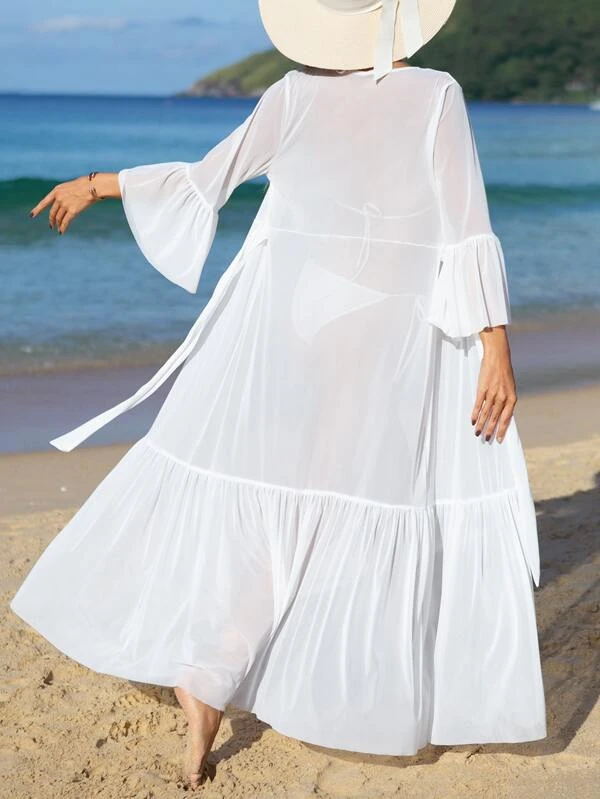 กิโมโน แขนแต่งระบาย สายผูกเอว ชายระบาย mm-85