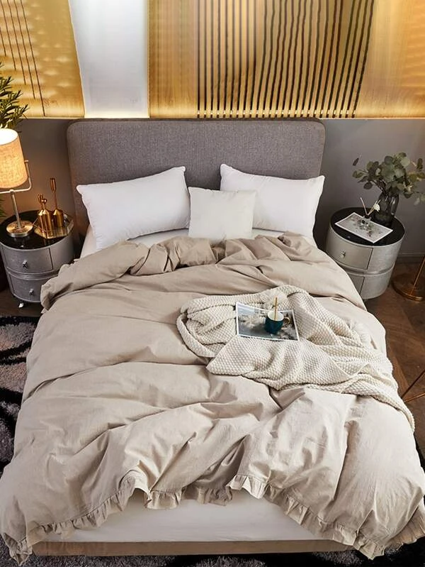 เซต ปลอกผ้านวม สีพื้น แต่งระบาย (ไม่รวมไส้นวม) t-12