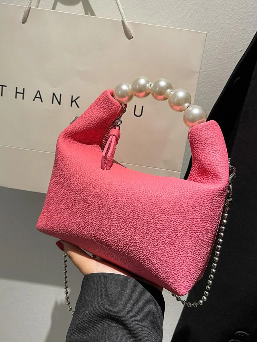 กระเป๋าสะพาย ทรงเสี้ยวพระจันทร์ มินิ ประดับ มุกเทียม v-73