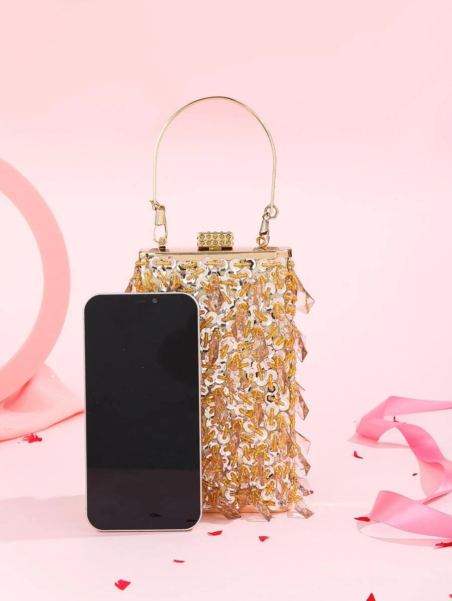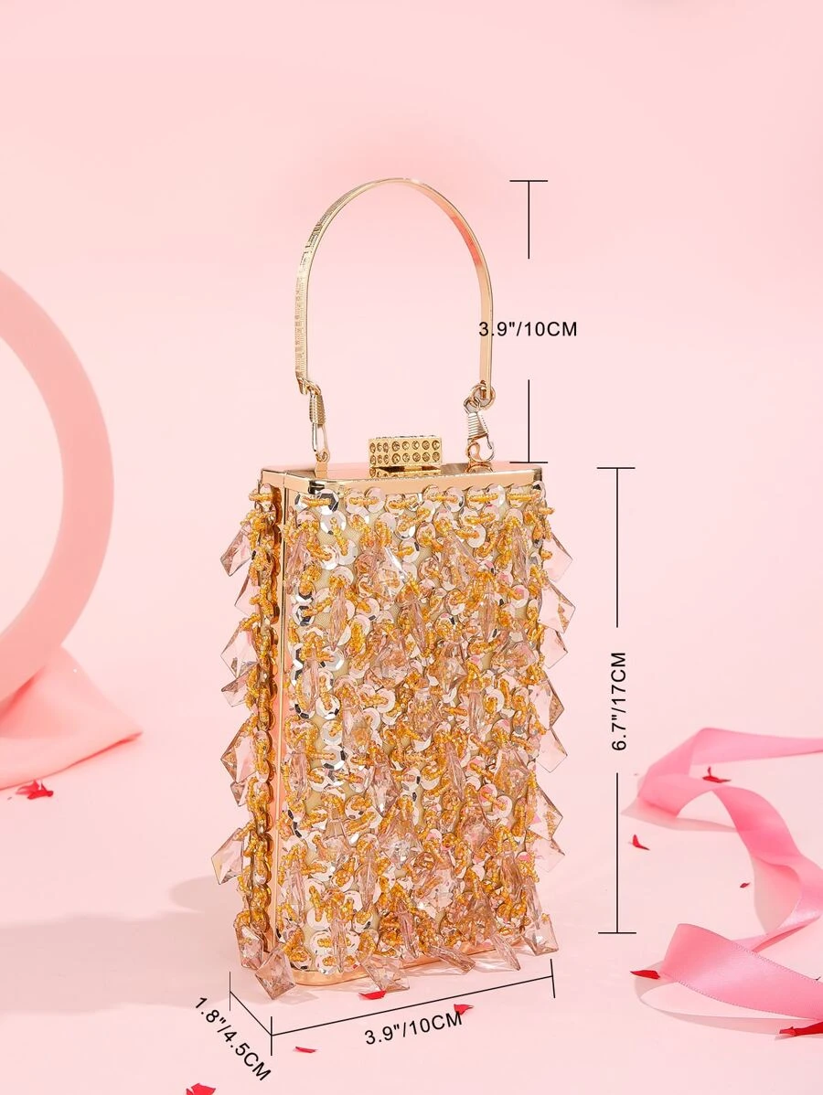 กระเป๋าแบบเหลี่ยม มินิ ลูกปัด & ตกแต่งเลื่อม v-92
